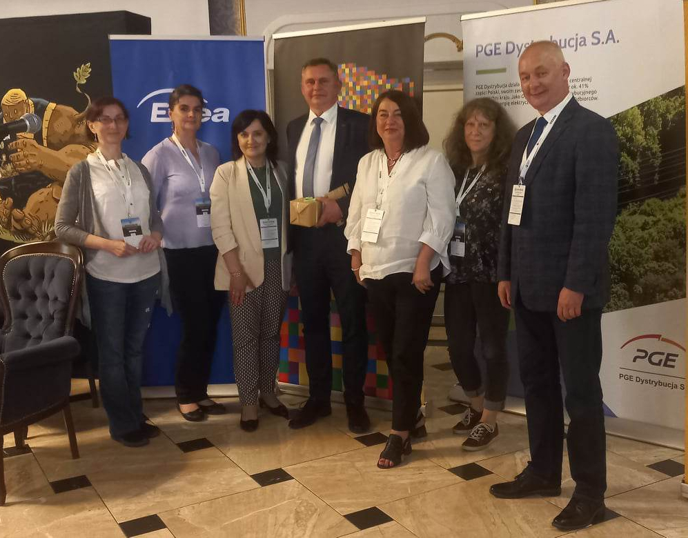Pamiątkowe zdjęcie członkiń PZITS i równocześnie przedstawicielek Enea Ciepło sp. z o.o. (głównego partnera wydarzenia), Wiceprezesa Zarządu Enea Ciepło sp. z o.o. – Tomasza Matana oraz Prezesa Fundacji Konstruktywnej Ekologii Ecoprobono – Grzegorza Chociana.